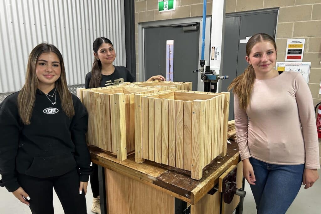 Women in Trades program participants built timber planter boxes from scratch. (Images: NexGen)